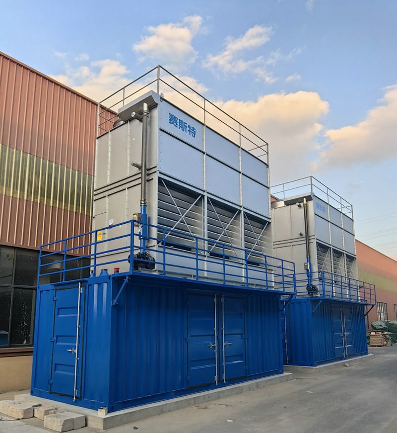 設(shè)備名稱:蒸發(fā)冷一體撬裝機組 出水溫度:-10℃ 壓 縮 機:半封閉螺桿式 機 房:全集裝箱設(shè)計,三面檢修門 項目地點:江蘇
